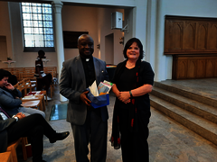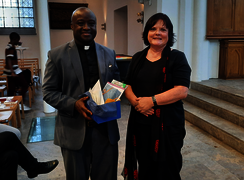 An dem Gottesdienst nahmen auch Gäste aus der Evangelischen Kirche in Hessen Nassau teil, wo Karusya bereits sechs Jahre lang gelebt und gearbeitet hat. Enge Verbindungen wurden in den Grußworten auch zu den Partnerschaften deutlich, die aus der Evangelischen Kirche im Rheinland zur tansanischen Karagwe Diözese bestehen, zum Beispiel im Kirchenkreis Leverkusen, der ebenfalls vertreten war. In allen Grußworten wurde deutlich: Pfarrer Karusyas Wort zählt, auf ihn wird gehört. „Denn Yoram Karusya kennt Deutschland gut – so gut, dass er uns als Berater in einer schwierigen Situation in der Region sogar schon mal eine „rheinische Lösung“ als Ausweg vorgeschlagen hat!“, berichtete die Superintendentin des Kirchenkreises Krefeld, Barbara Schwahn.