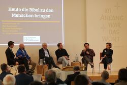 The General Assembly connects the work of the regional societies in Germany, of Christian Churches and other associations working for Bible Mission, Bible Spreading and Bible Education. At this General Assembly, Prof Mirjam Zimmermann, who is a teacher on Religious Education in Siegen University, gave a lecture about “Pulling the Bible Into Life: What is Mimetic Bible Education?”. This approach invites youth to imitate characters, story lines and books of the biblical tradition. This way they can discover their own approach to the Bible.