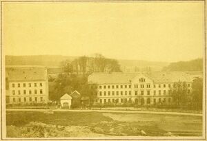 Nicht viel ist von dem repräsentativen Gebäude an der Rudolfstraße mit seinen zwei Flügeln beiderseits des spitzgiebeligen Eingangsportals geblieben. Selbst der Verbleib des mannshohen Kreuzes, das den Giebel einmal bekrönte, ist ungewiss.